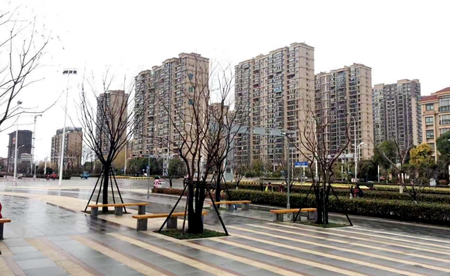 陽(yáng)澄鄰里中心景觀工程主要包括北側(cè)主廣場(chǎng)石材鋪裝和四個(gè)苗木組團(tuán)共同構(gòu)成,其中綠化組團(tuán)由主廣場(chǎng)樹(shù)陣、西側(cè)生態(tài)停車(chē)場(chǎng)綠化帶、鄰里中心主入口區(qū)及南側(cè)卸貨區(qū)。苗木主要有櫸樹(shù)、烏桕、香樟、樸樹(shù)、柿樹(shù)等,整體觀感做到四季有賞、落葉常綠分明。