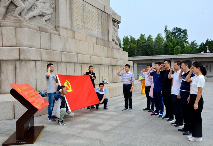 在淮海戰(zhàn)役烈士紀(jì)念塔前,大家駐足瞻仰,對(duì)烈士們肅然起敬。在公司黨支部書(shū)記劉建華的帶領(lǐng)下,全體黨員面對(duì)鮮紅的黨旗,舉起右手,重溫入黨誓詞,“我志愿加入中國(guó)共產(chǎn)黨,擁護(hù)黨的綱領(lǐng),遵守黨的章程,履行黨員義務(wù),執(zhí)行黨的決定……”,鏗鏘有力的宣誓,向?yàn)樵诨春?zhàn)役中犧牲的先烈們表示深深的敬意,表達(dá)了全體黨員愿為社會(huì)主義事業(yè)奮斗終身的堅(jiān)定信心。隨后,大家懷著崇敬的心情瞻仰了在戰(zhàn)役中英勇?tīng)奚牧沂坑⒚?。在紀(jì)念館展廳,大家都認(rèn)真參觀,仔細(xì)聆聽(tīng)講解員對(duì)歷史的講解,每到一個(gè)展柜都會(huì)駐足觀看圖片資料,了解淮海戰(zhàn)役的整個(gè)過(guò)程,深深感受到了革命先烈們的非凡膽識(shí)和英勇壯舉,并對(duì)人民群眾踴躍支持前線(xiàn)行為表示由衷贊嘆。
