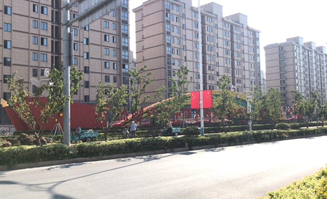 近期,走在道路上,園區(qū)居民會發(fā)現(xiàn)青海湖西路東入口南側(cè)設(shè)置一座建國70周年景觀雕塑,同時(shí)道路兩側(cè)路燈桿件懸掛國旗、中國結(jié)和70周年標(biāo)識的中國結(jié)等各式各樣的節(jié)日氛圍。