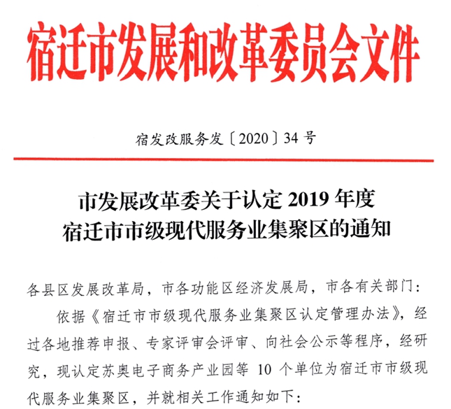 近日,根據(jù)《市發(fā)展改革委關(guān)于認(rèn)定2019年度宿遷市市級現(xiàn)代服務(wù)業(yè)聚集區(qū)的通知》,蘇宿園區(qū)生產(chǎn)力中心成功創(chuàng)成宿遷市市級現(xiàn)代服務(wù)業(yè)聚集區(qū)。