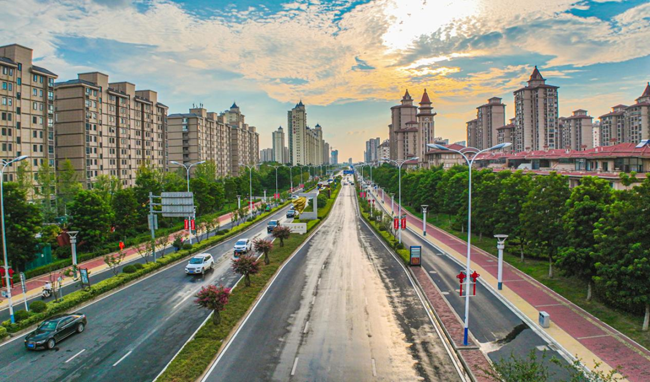 8月11日,航拍蘇宿工業(yè)園區(qū)商住區(qū),藍天白云晚霞與城市建筑、綠化景觀、交通道路等相互映襯,構成一幅初秋城市美麗生態(tài)畫卷。