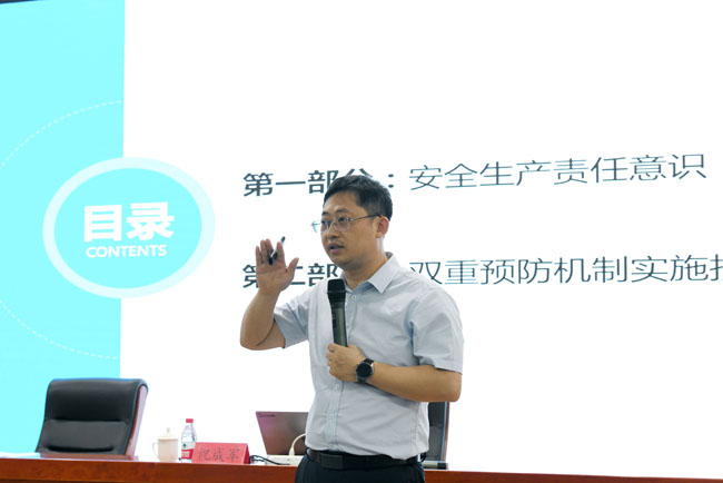 本次培訓(xùn)邀請國家注冊安全工程師祝成軍進(jìn)行授課。培訓(xùn)會上,祝成軍圍繞開展安全生產(chǎn)雙重預(yù)防體系建設(shè)工作的意義,相關(guān)法律法規(guī)、標(biāo)準(zhǔn)等內(nèi)容進(jìn)行了詳細(xì)講解,并結(jié)合具體事故案例,對如何理解雙重預(yù)防體系、如何劃分作業(yè)單元、如何進(jìn)行風(fēng)險(xiǎn)辨識與評價(jià)等內(nèi)容進(jìn)行了專門的講解。