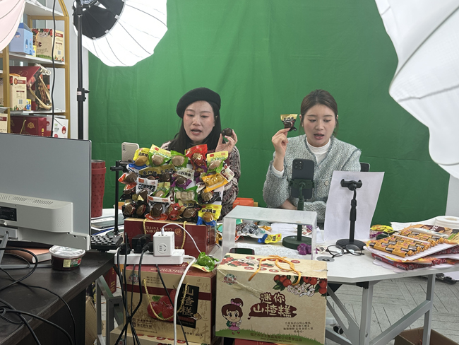 當(dāng)天,電商產(chǎn)業(yè)園內(nèi)的“直播大棚”人氣爆棚。主播們?cè)阽R頭前與消費(fèi)者展開(kāi)互動(dòng),充滿激情地介紹各類(lèi)商品,通過(guò)生動(dòng)的語(yǔ)言和直觀的展示,將商品的特點(diǎn)和優(yōu)勢(shì)傳達(dá)給觀眾,引導(dǎo)他們進(jìn)行購(gòu)買(mǎi),主播們還以抽獎(jiǎng)、送禮等方式增加直播的趣味和互動(dòng),吸引更多觀眾的參與。