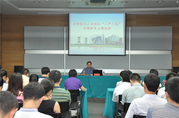 8月26日上午,園區(qū)工委委員、規(guī)劃建設(shè)局局長周原為園區(qū)機(jī)關(guān)及直屬單位黨委、園區(qū)公安分局黨委、園區(qū)國資國企黨總支黨員和入黨積極份子講了一堂“三嚴(yán)三實(shí)”專題黨課。