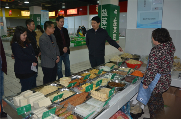 戈亮一行現(xiàn)場聽取了菜場負(fù)責(zé)人開業(yè)準(zhǔn)備工作情況匯報,實(shí)地察看了生鮮菜場規(guī)劃布局、開業(yè)方案、食品安全臺賬、食品安全檢測室設(shè)備,與各經(jīng)營戶親切交談。