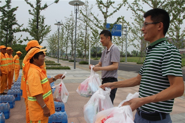 朱亞楠表示,園區(qū)環(huán)衛(wèi)工人頂著烈日,為恒大集團(tuán)等園區(qū)企業(yè)創(chuàng)造了整潔、優(yōu)美的城市環(huán)境,他代表恒大集團(tuán)宿遷項(xiàng)目全體人員向他們致以誠(chéng)摯的敬意和謝意。許紹杰也對(duì)奮戰(zhàn)在一線(xiàn)的環(huán)衛(wèi)工人表示感謝和祝福,多次叮囑他們高溫作業(yè)要注意安全,勞逸結(jié)合。